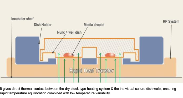 The Rapid Recovery system gives you direct thermal contact between the dry block type heating system and the individual culture dish wells, ensuring rapid temperature equilibration combined with low temperature variability.